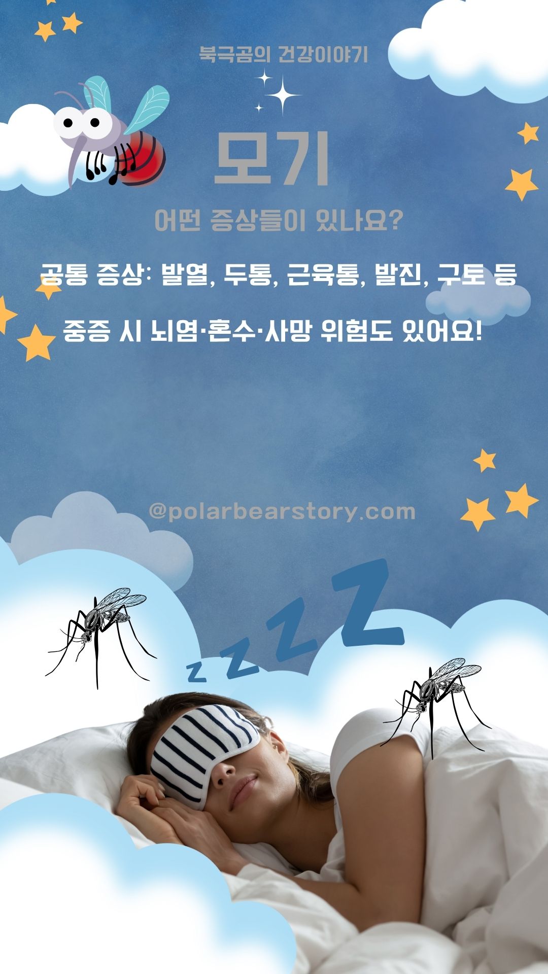 모기, 여름에는 모기가 왕성하게 활동하는 계절입니다. 모기로 인해 밤잠을 설치는 분들도 계시고 피해를 입는 분들도 계실 겁니다. 모기는 단순히 피만 빠는 그런 벌레일까요? 오늘은 모기로 인해 발생할 수 있는 질병들과 그 질병들의 예방법, 대처법 등을 한번 알아보도록 하겠습니다.