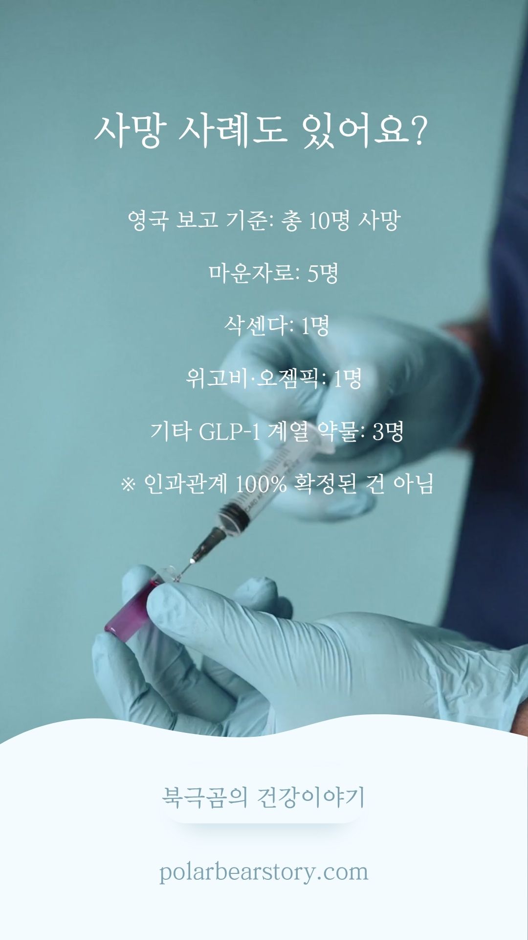 • 세마글루티드(위고비, 오젬픽): 113건 보고, 1명 사망