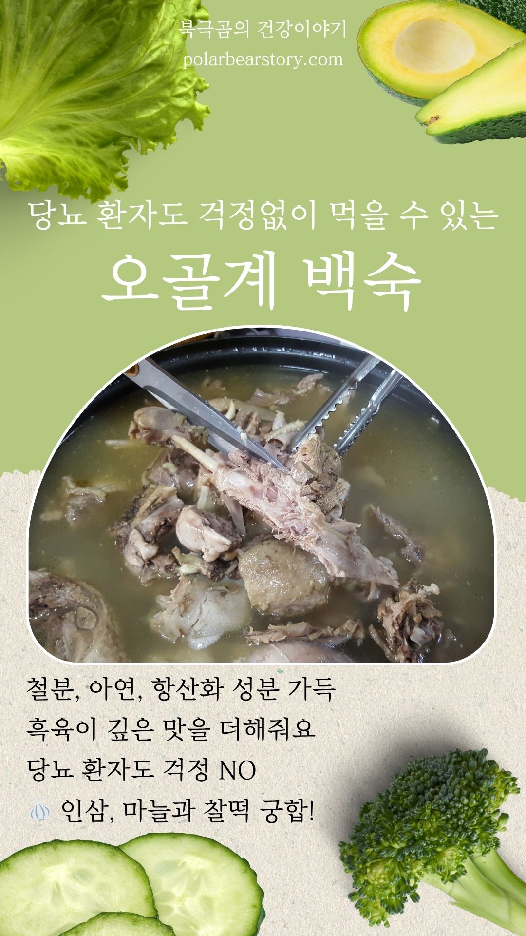 - 효능: 오골계는 철분, 아연 등 미네랄이 풍부하며 항산화 효과도 뛰어나 노화 방지에도 도움이 됩니다.