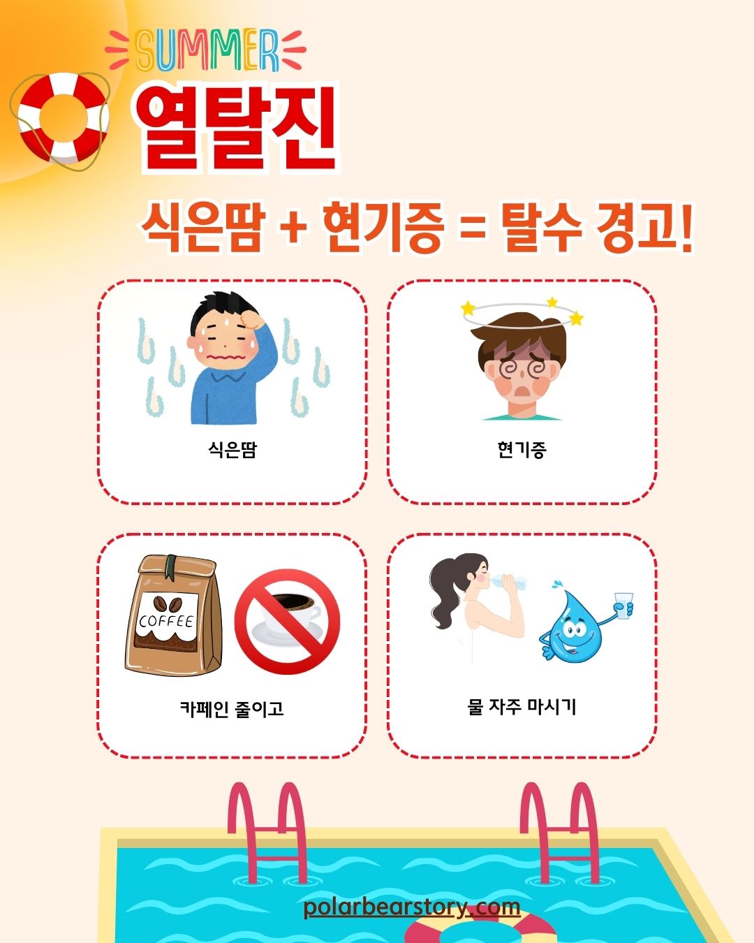 더운 날 물을 안 마시고 활동하다 보면 식은땀 + 현기증 = 열탈진
