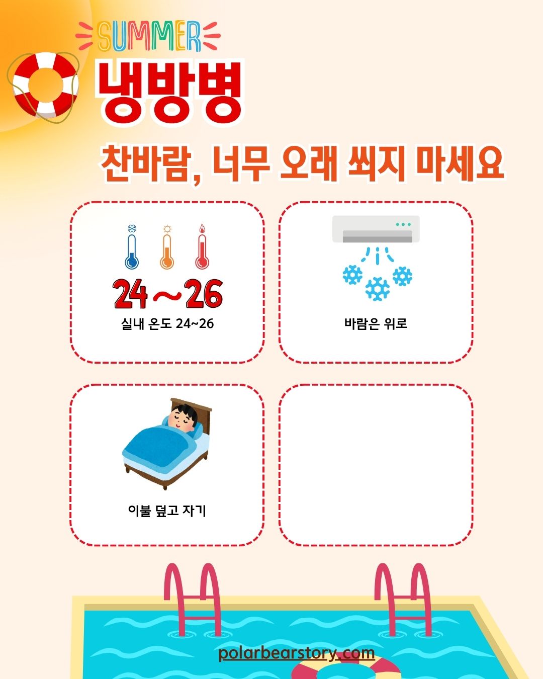 - 실내 온도 24~26도 유지, 바람 방향은 위로